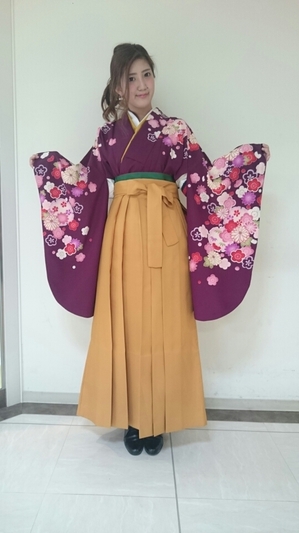 卒業式後の謝恩会に出席されるのに袴を借りられ、着付けもマリリンハウスでしていただきました(^^)