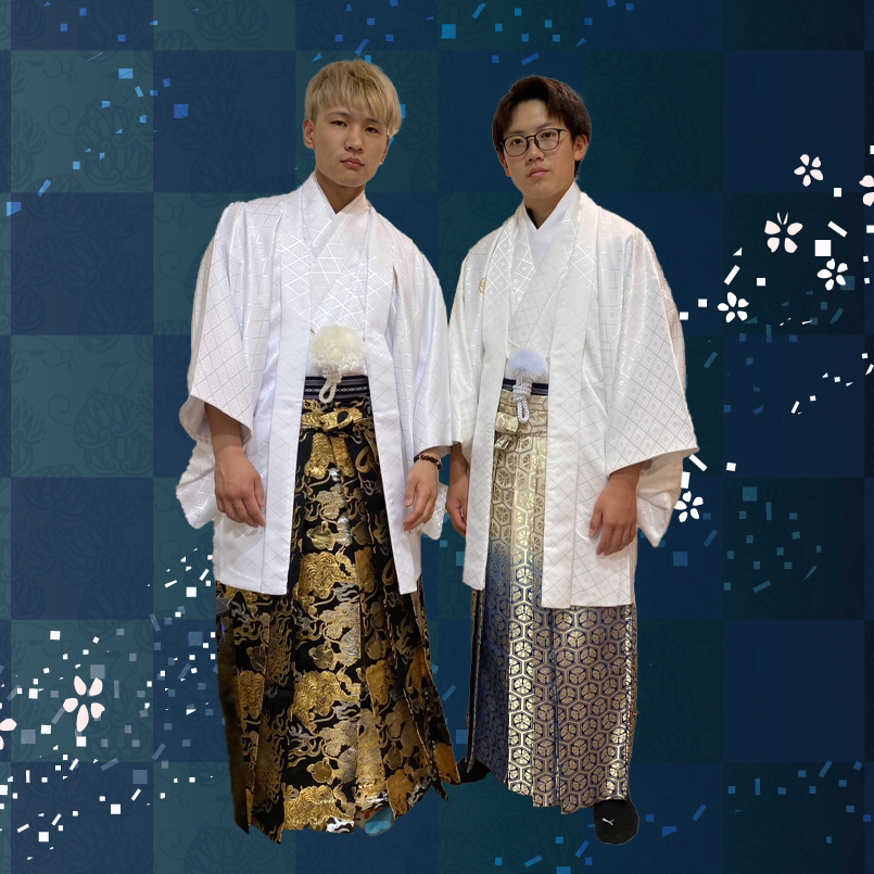 お2人とも白のお着物にゴールドの袴がとてもかっこよく目立ちますね!