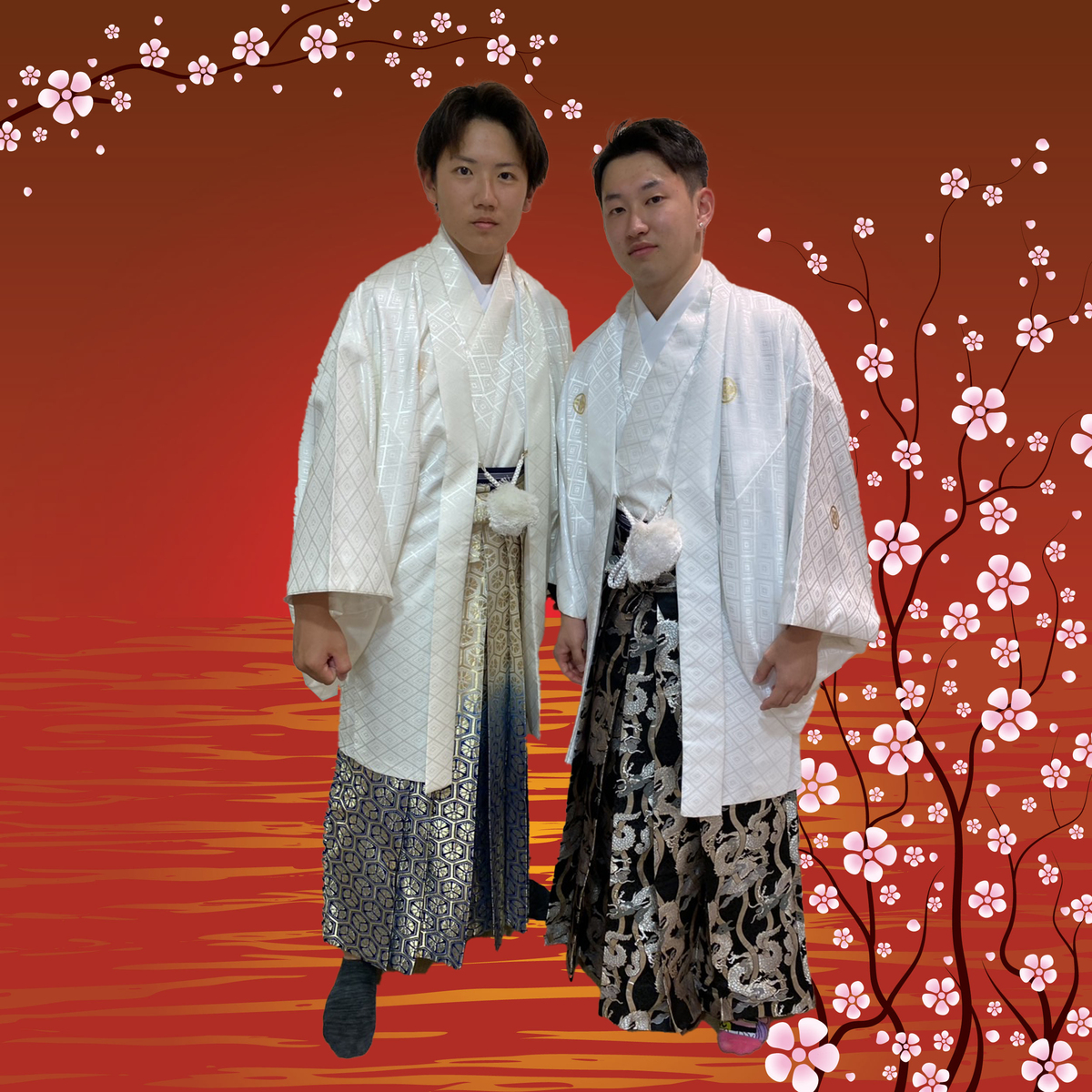 白地の着物に派手なかっこいい袴がお似合いなお2人です♪