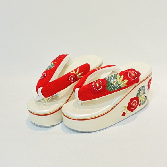 色 :白・赤鼻緒/鶴と松竹梅刺繍