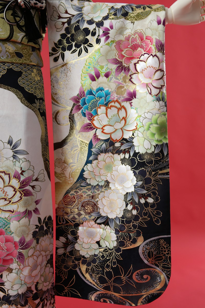 金彩に縁どられた華やかな牡丹が上品な振袖です。