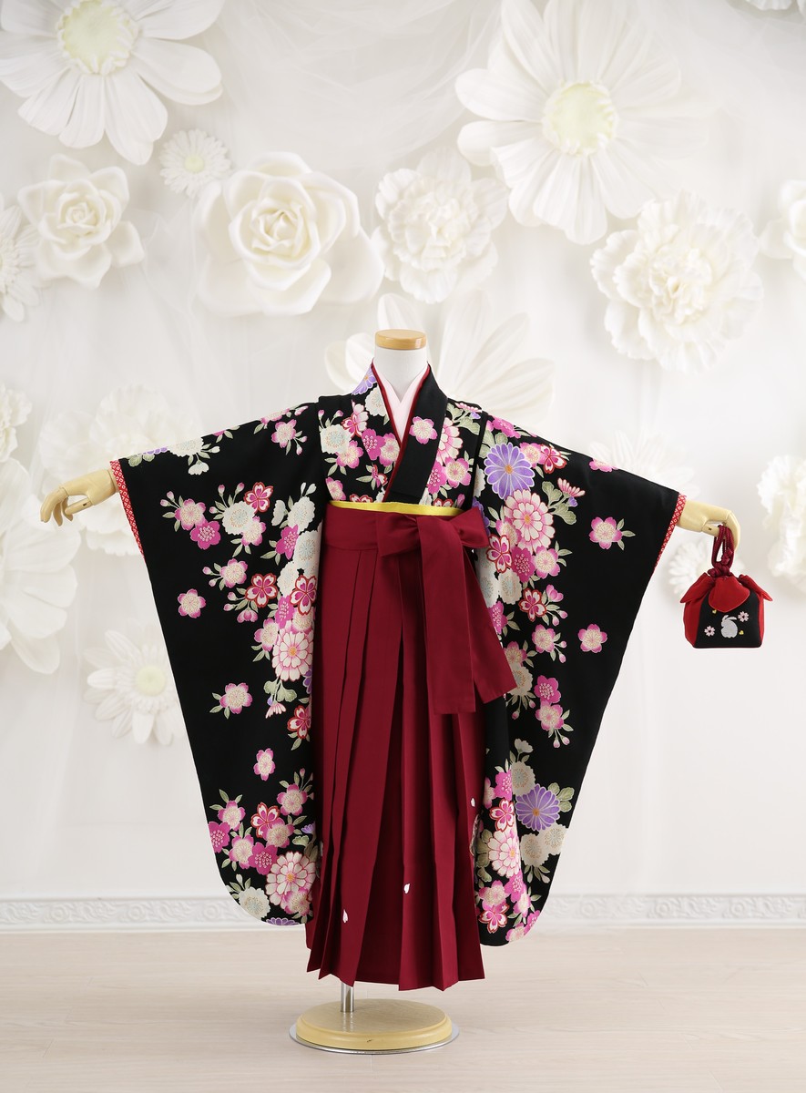 七五三着物レンタル 七歳女の子七五三レンタル 袴セット 七歳用 エンジ鞠