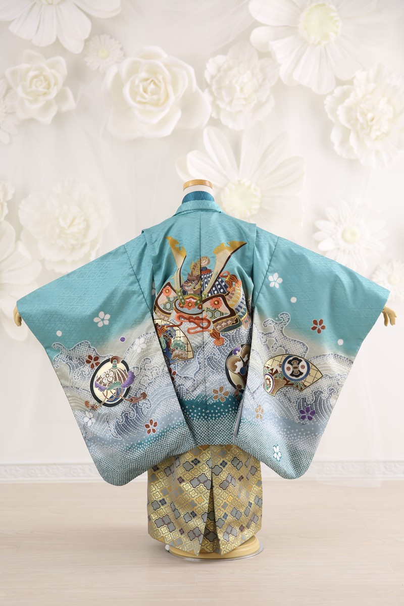 着物 :青/エメラルドグリーン/兜