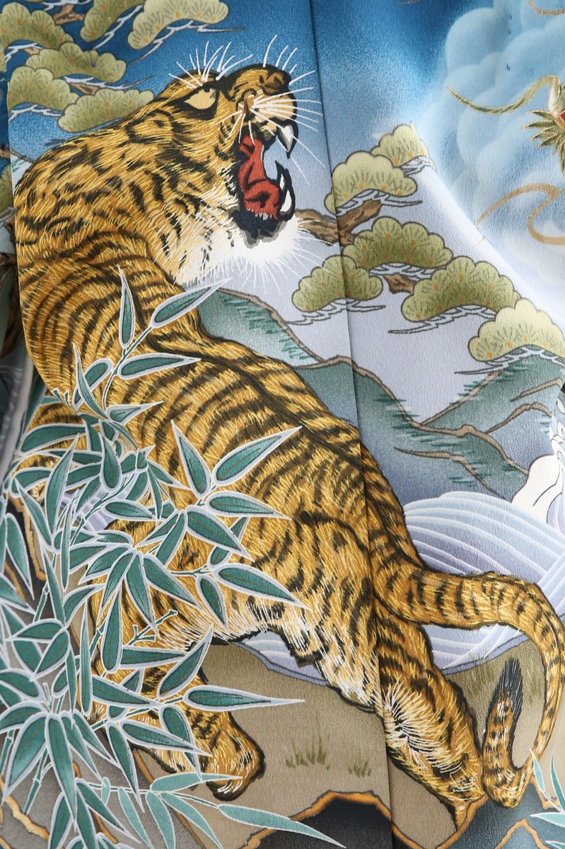 7歳の女の子は、長袖の着物に七五三用の帯をつけ、帯下には「しごき」を締めます。