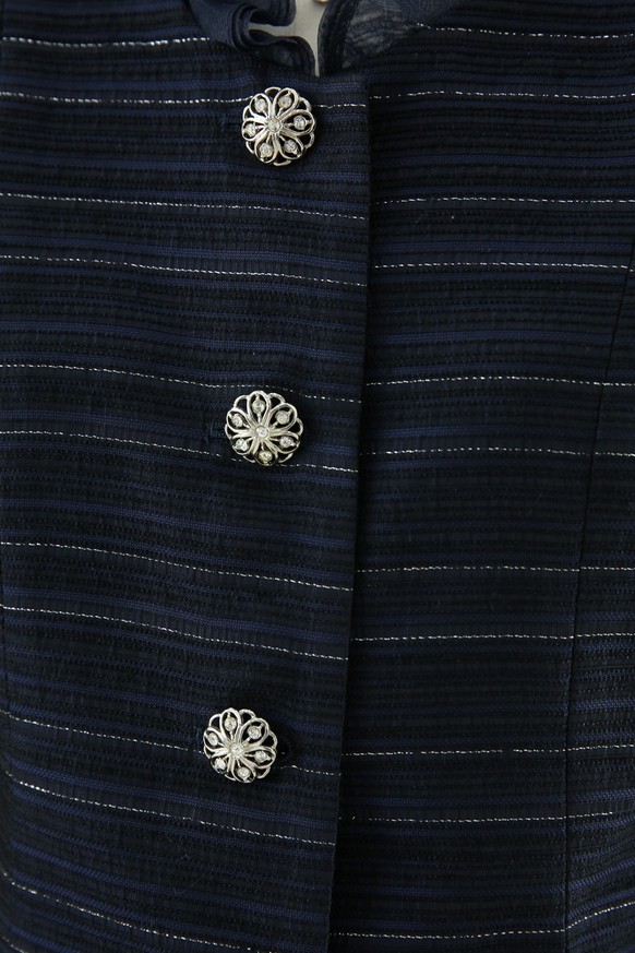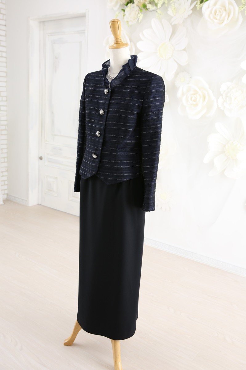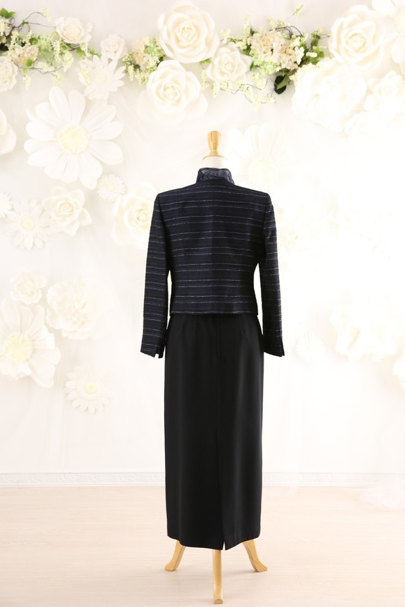 コメント :ネイビーにシルバーでボーダー柄、華やかな落ち着いた雰囲気のジャケット