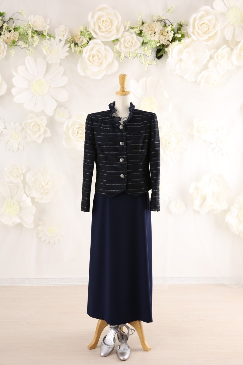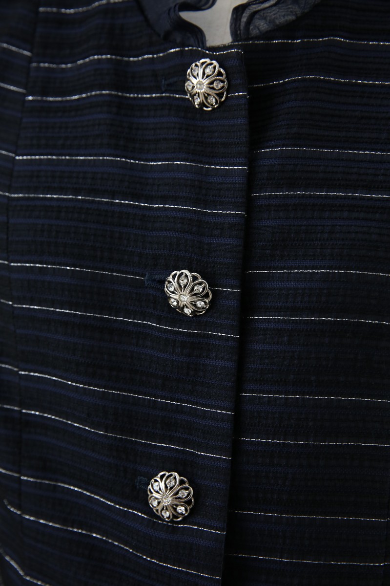 コメント :ネイビーにシルバーでボーダー柄、華やかな落ち着いた雰囲気のジャケット