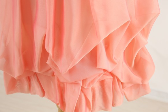 特徴 :明るい色味のオレンジでデザインがバルーンになっており、華やかな所で綺麗に着て頂けます