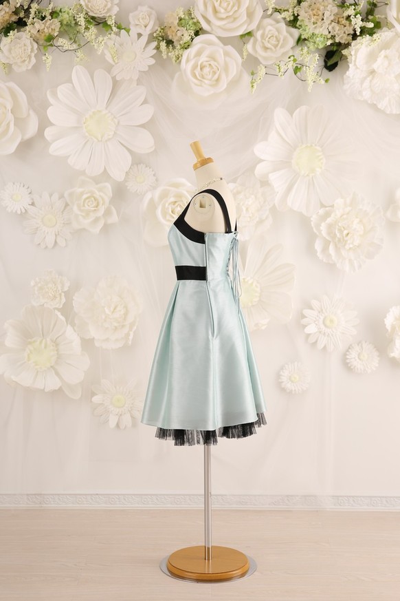 特徴 :ふんわりとした水色のドレスで、胸元がレースビスチェが付いていて、取り外し可能