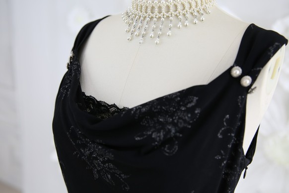 コメント :エレガントで上品なミモレ丈ドレスです。