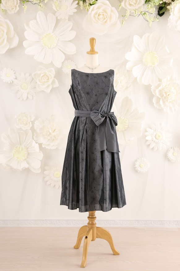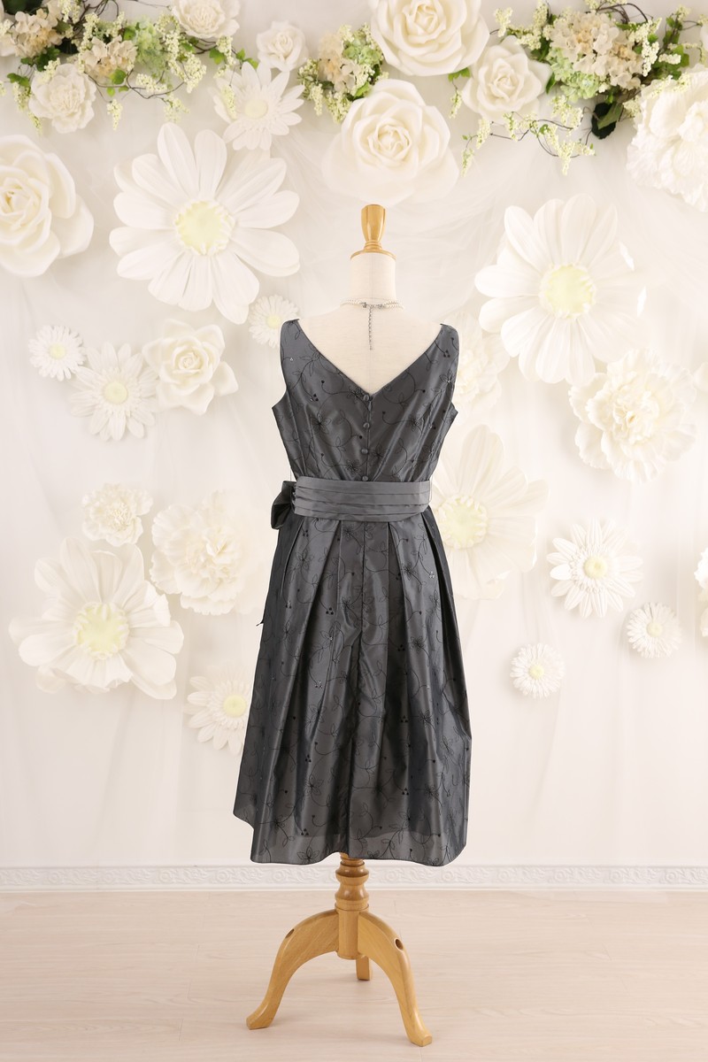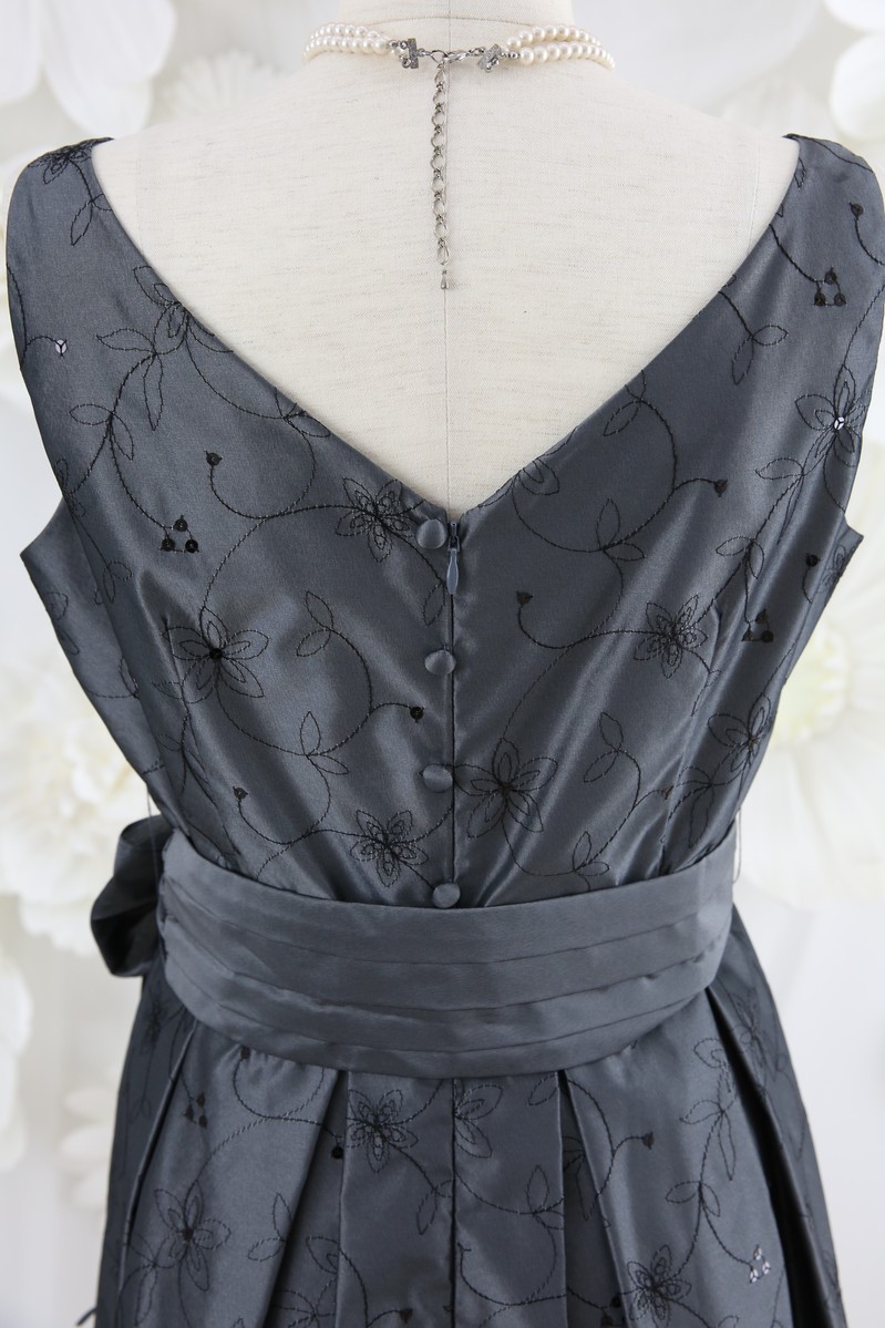 特徴 :Aラインのお花刺繍が特徴のドレス、スパンコールが少しデザインに施されており光が当たるとさりげくキラキラとします。