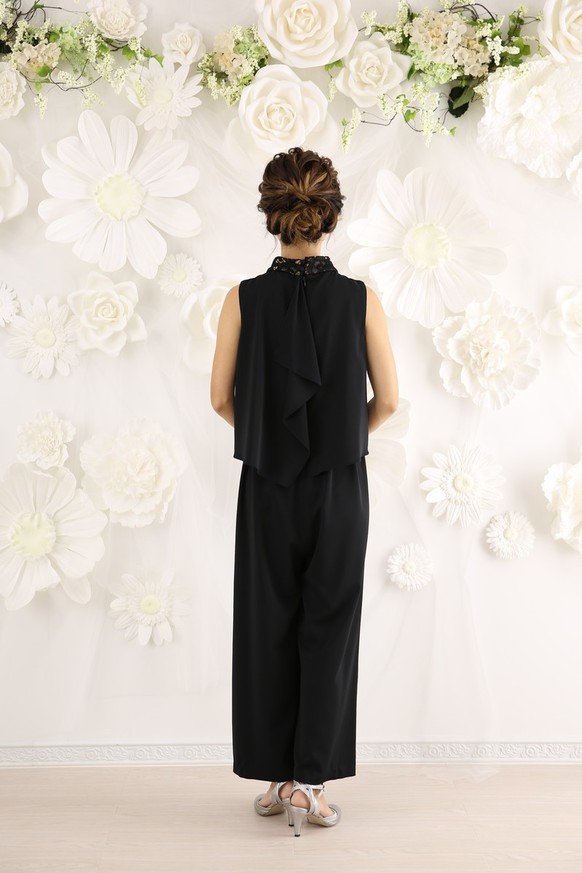 特徴 :綺麗なシルエットのオールインワンワイドパンツドレス