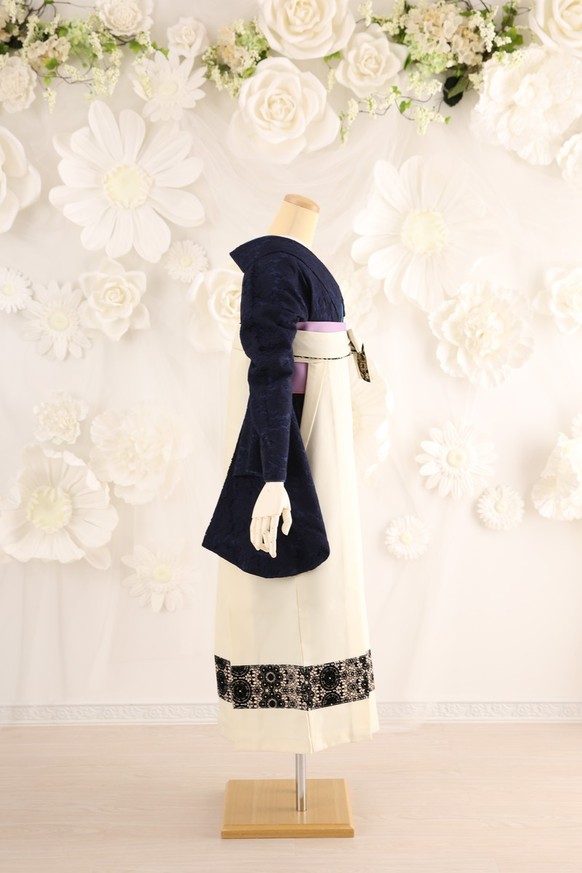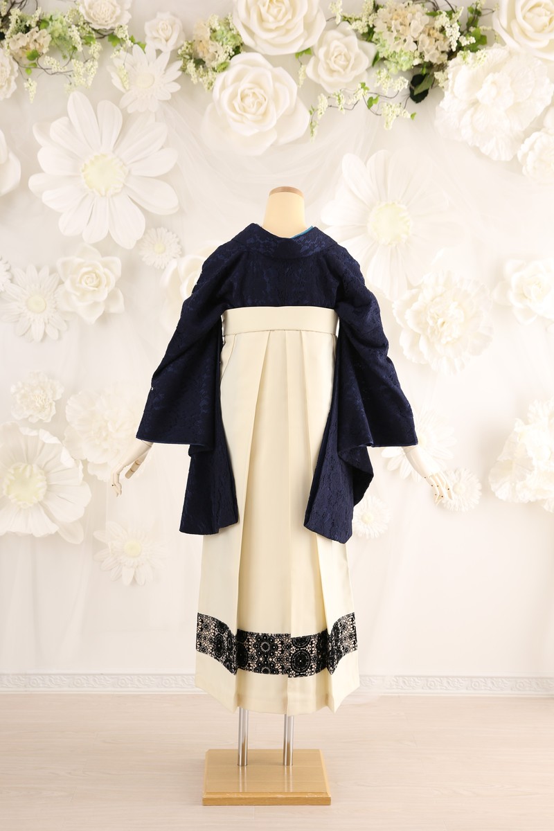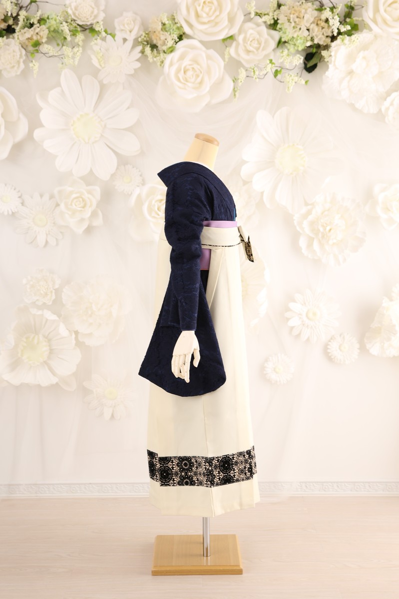 アイボリーの袴で明るさをプラスして裾と腰ひものベロア生地の