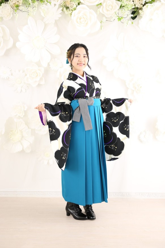 袴:可愛らしい雪輪と花の刺繍が施され、大正ロマンを感じさせます。