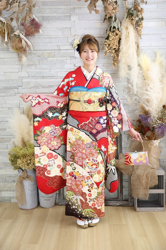 赤い古典柄の振袖はいつまでも定番の人気です。
