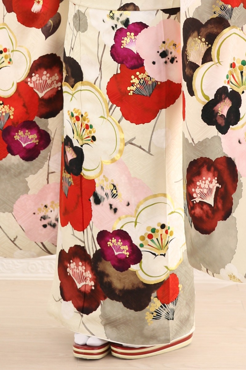 レトロ可愛い大胆な梅柄が印象的な振袖です。